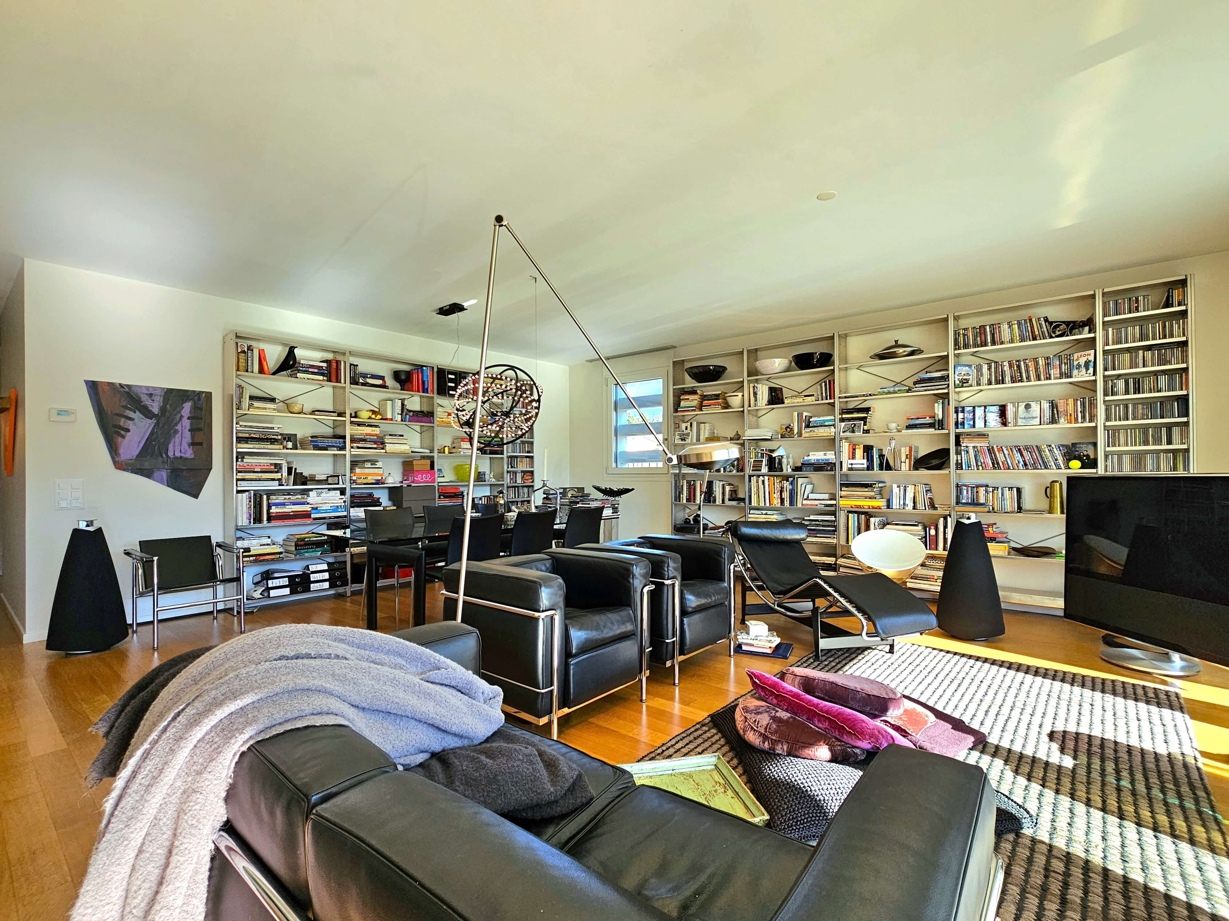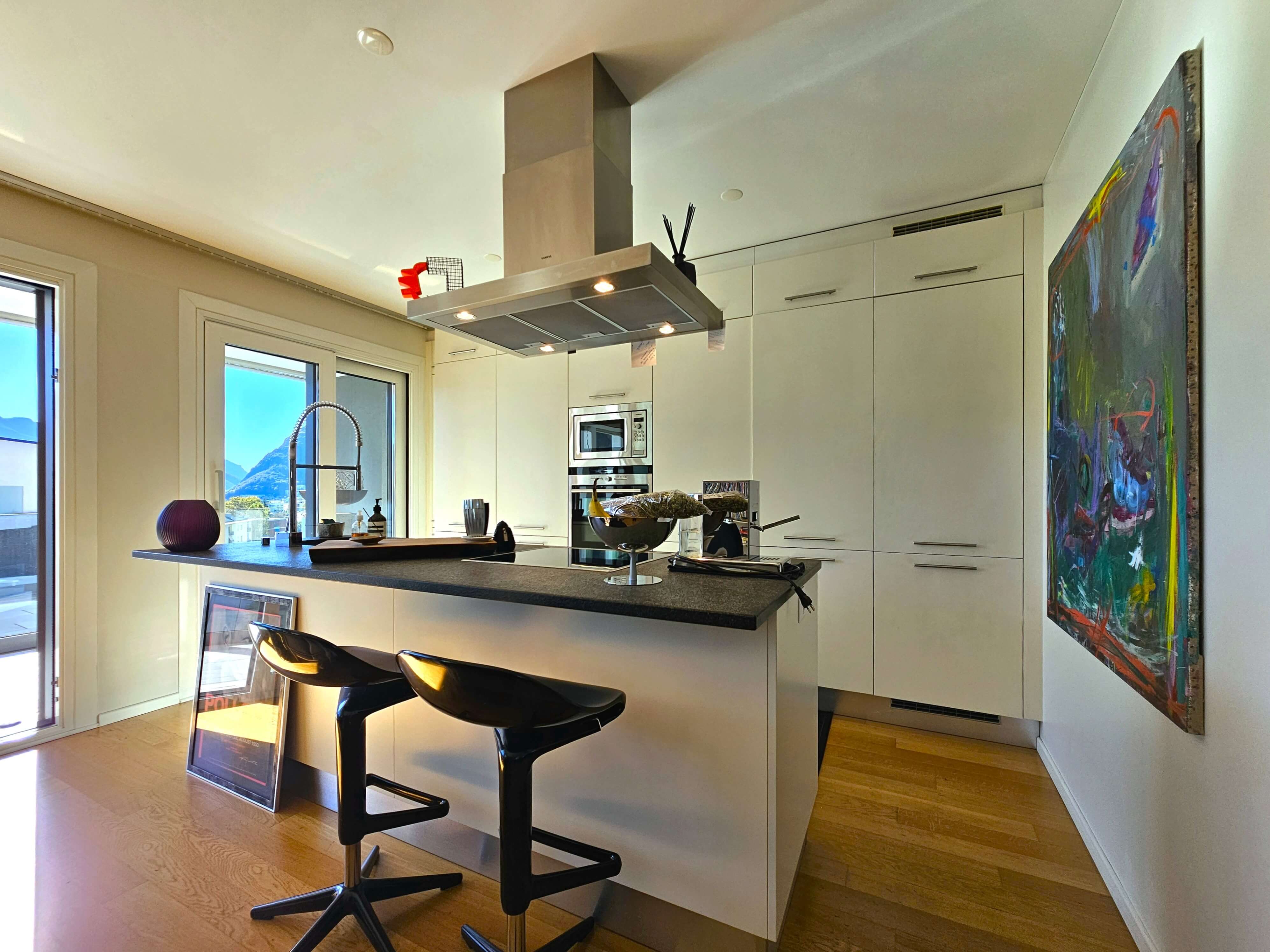 - zona giorno: La zona giorno si compone di un ampio soggiorno open space con cucina moderna, corredato da vetrate panoramiche che assicurano un'eccellente luminosità naturale ed offrono una vista diretta sulla grande terrazza coperta (di circa 18 mq);