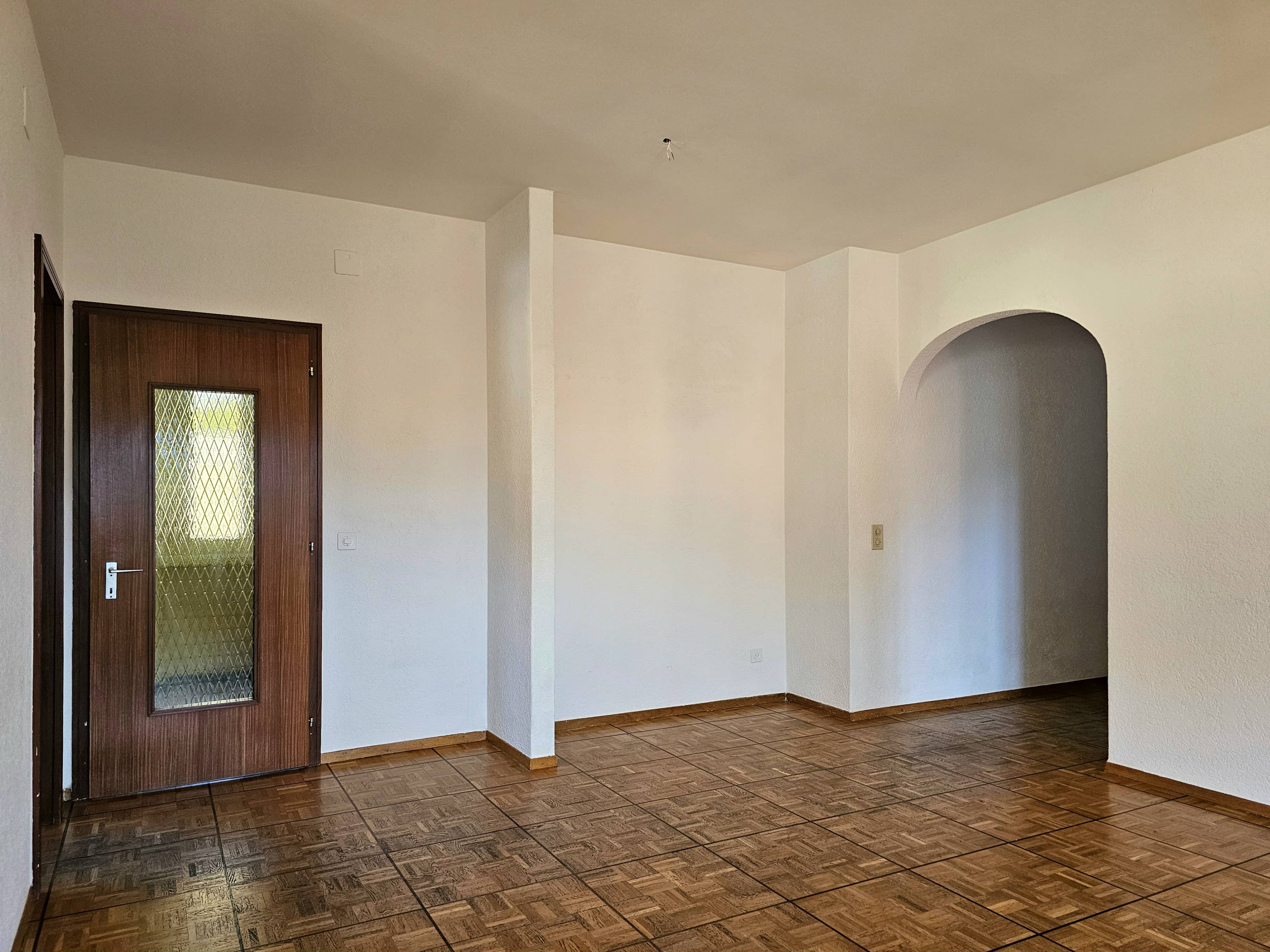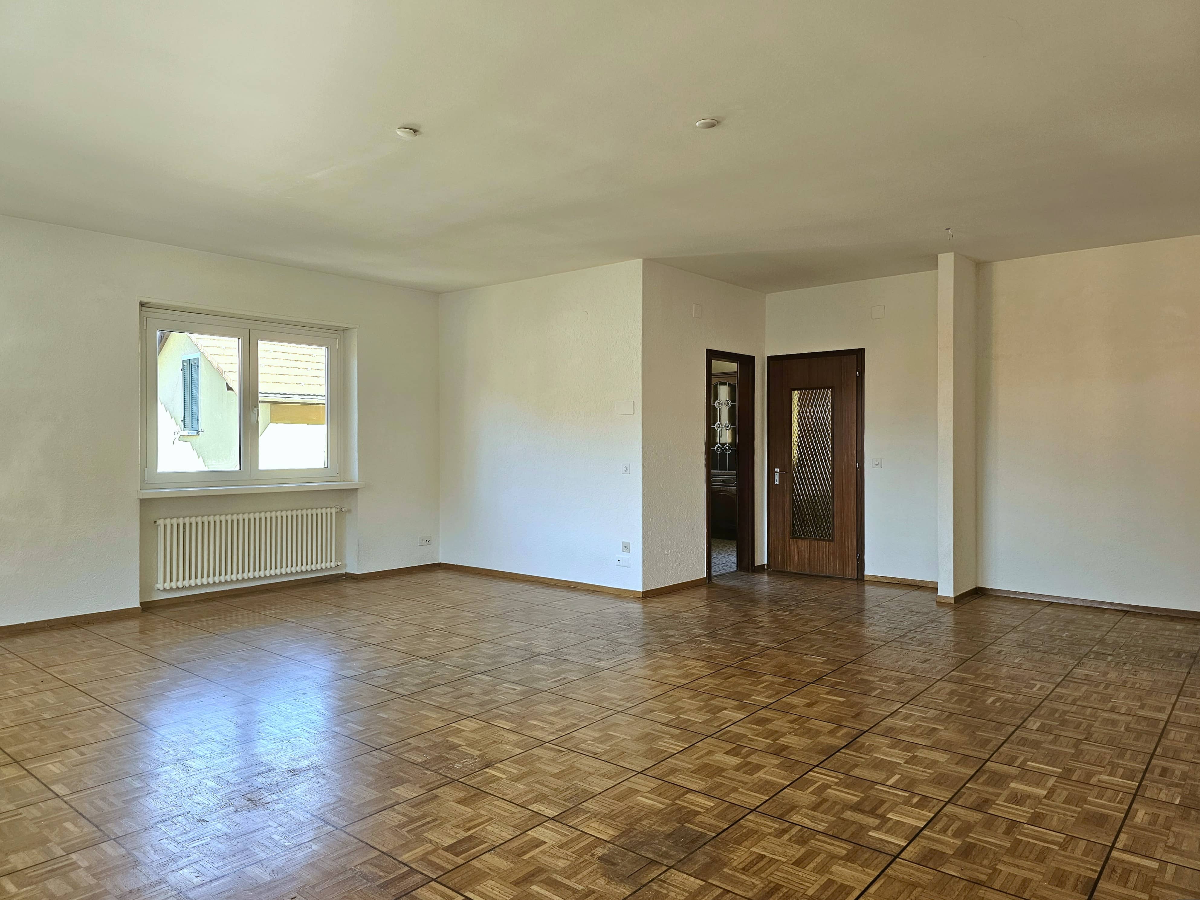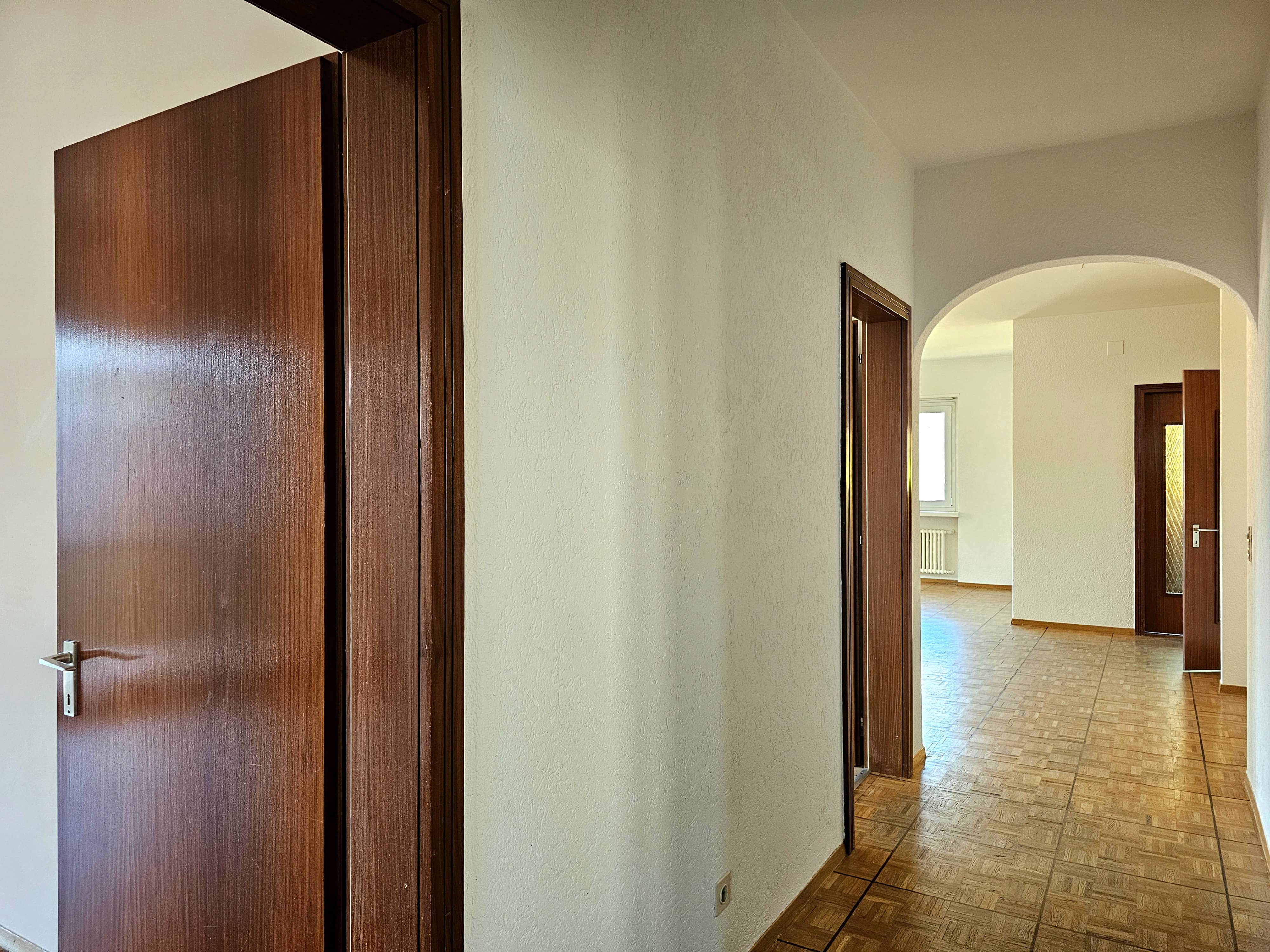 L’edificio, realizzato all’inizio degli anni ’70, e rimasto in gran parte originale, ha comunque beneficiato nel tempo di alcuni interventi di rinnovamento, tra cui la sostituzione completa dei serramenti avvenuta nel 2007, che ne ha migliorato comfort ed efficienza. Internamente l’immobile è suddiviso in due unità abitative indipendenti di 4.5 locali, di identica metratura e caratterizzate da ambienti ampi, luminosi e ben distribuiti, ideali per nuclei familiari o per chi desidera spazi abitativi generosi.